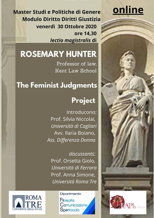 In occasione dell'apertura del modulo Diritto, Diritti, Giustizia, all'interno del Master in Studi e Politiche di Genere del nostro Ateneo, venerdì 30 ottobre, alle 14.30, la professoressa Rosemary Hunter docente presso la Kent Law School terrà una Lectio Magistralis dal titolo: