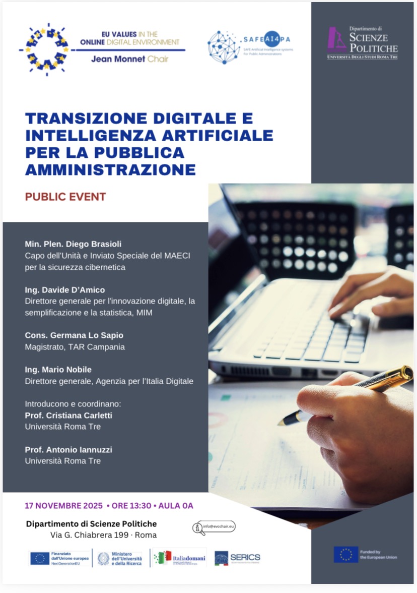 Il 17 novembre alle 13.30 in aula 0a si terrà l'evento dal titolo Transizione digitale e intelligenza artificiale per la pubblica amministrazione.