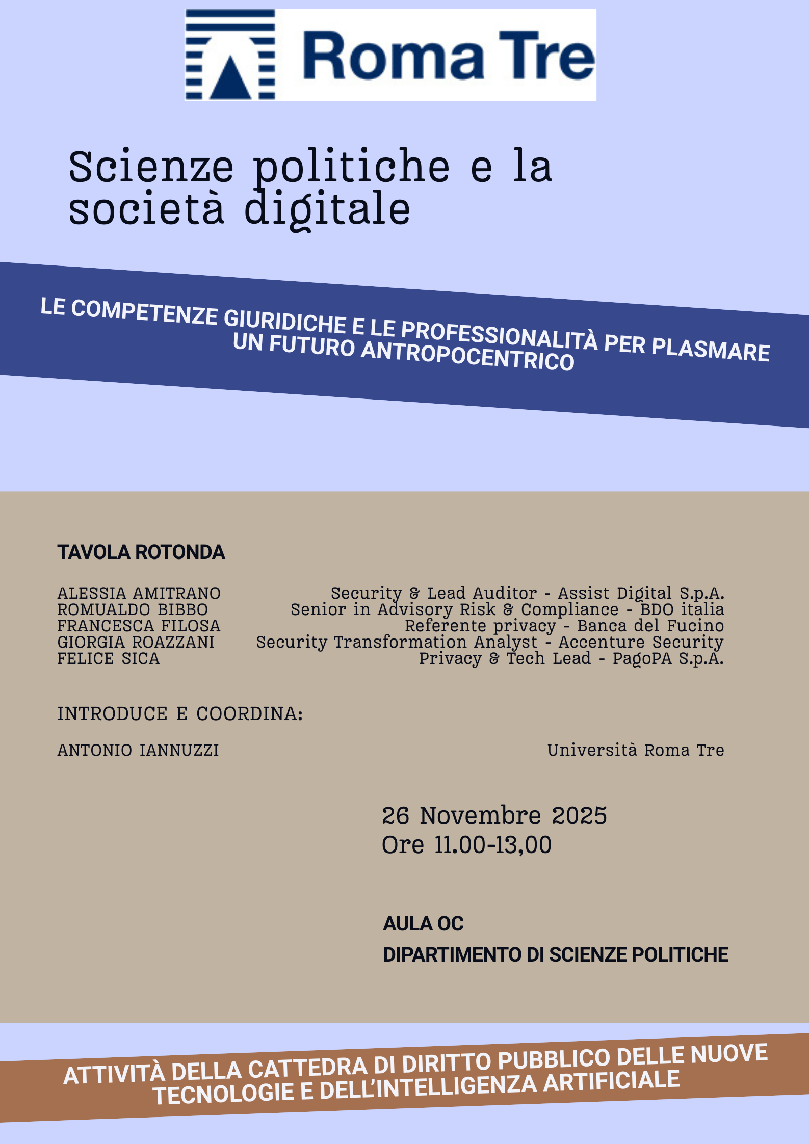 Le competenze giuridiche e le professionalità per plasmare un futuro antropocentrico Il 26 novembre alle 11 in aula 0c avrà luogo l'evento dal titolo "le competenze giuridiche e le professionalità per plasmare un futuro antropocentrico"Link identifier #identifier__182598-1LocandinaLink identifier #identifier__197769-1Link identifier #identifier__96231-2Link identifier #identifier__3544-3 Skip back to navigation