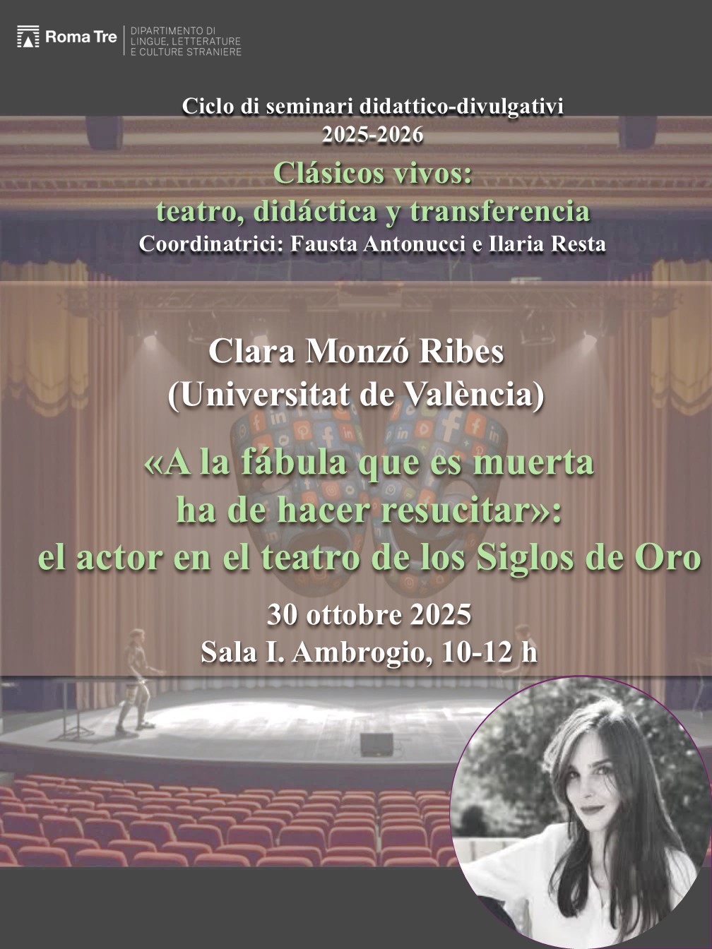 Seminario «A la fábula que es muerta ha de hacer resucitar»: el actor en el teatro de los Siglos de Oro 30 ottobre 2025dalle 10:00 alle 12:00Sala I. AmbrogioLink identifier #identifier__123655-1LocandinaLink identifier #identifier__163182-1Link identifier #identifier__18041-2Link identifier #identifier__140445-3 Skip back to navigation